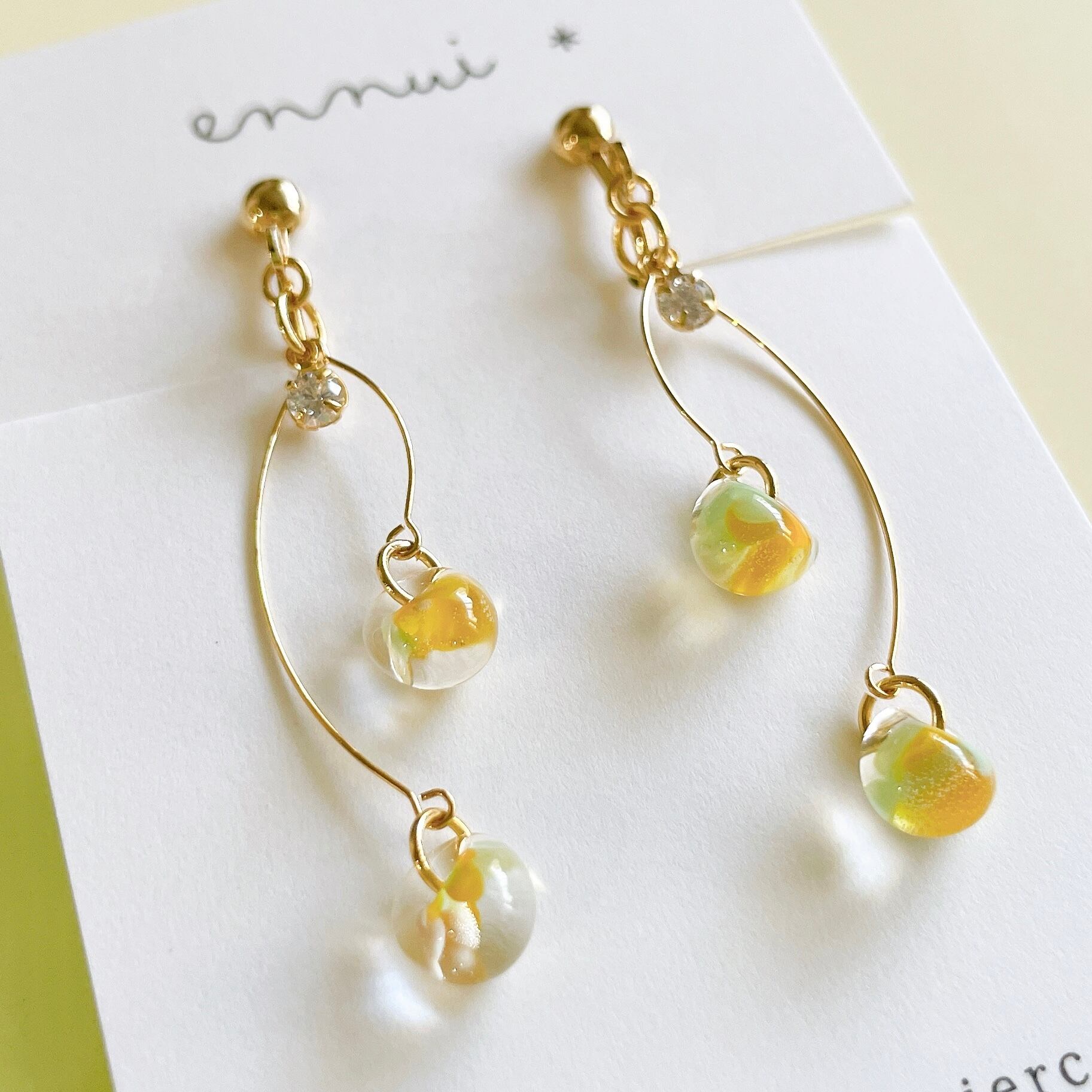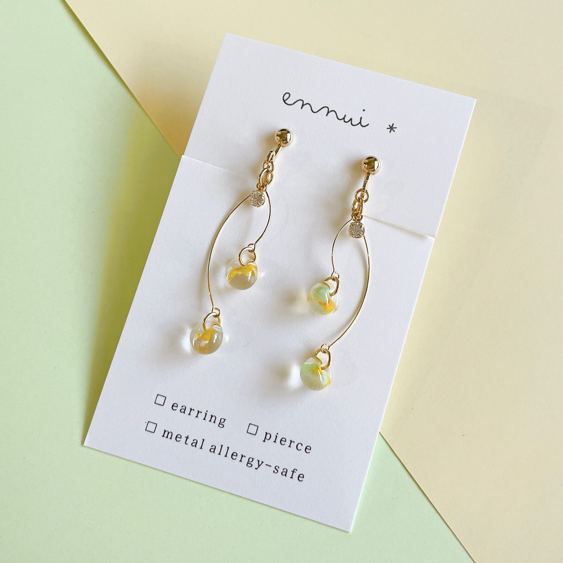 可憐なミモザの美しさを、イエロー×グリーンのティアドロップビーズに閉じ込めたイヤリング/ピアス◎