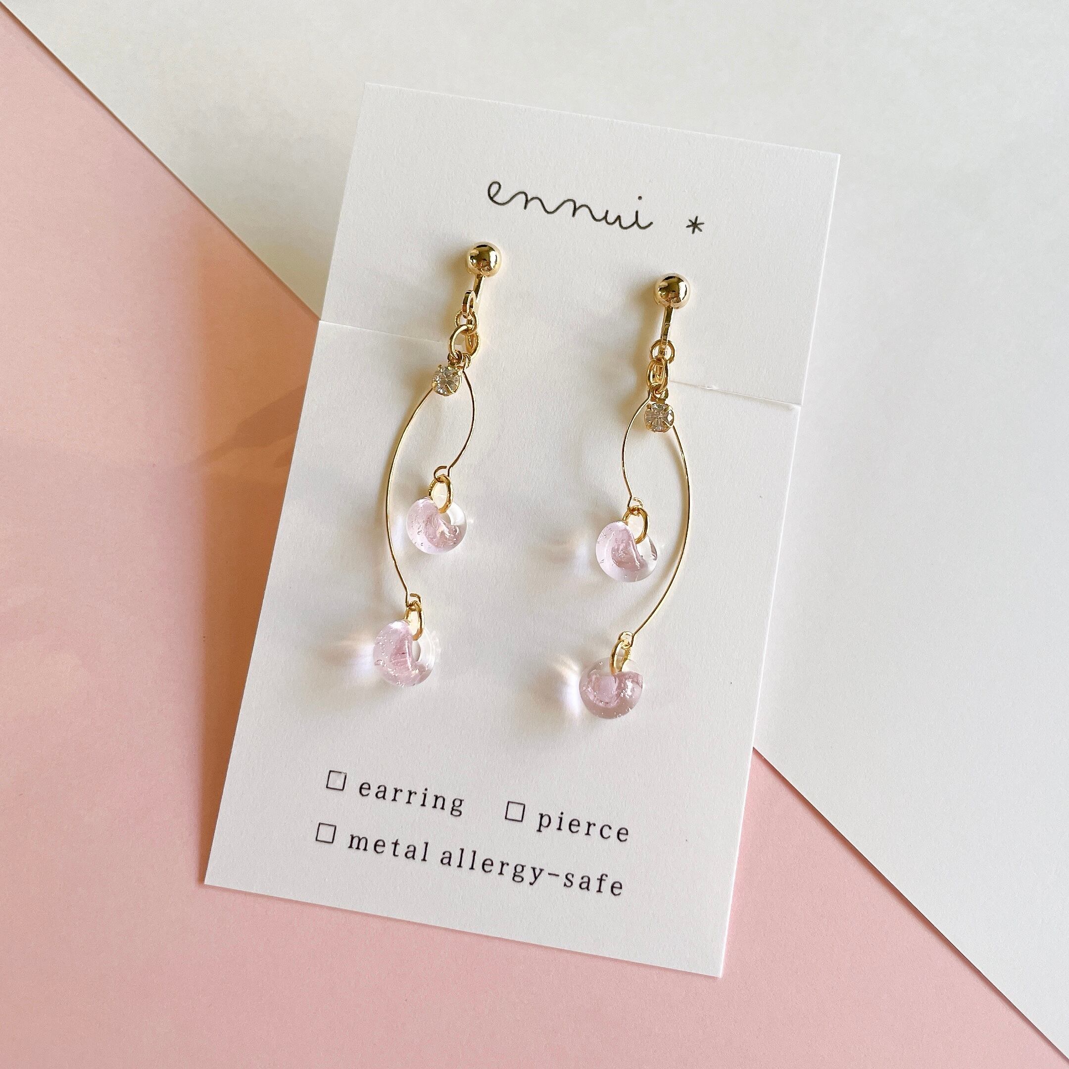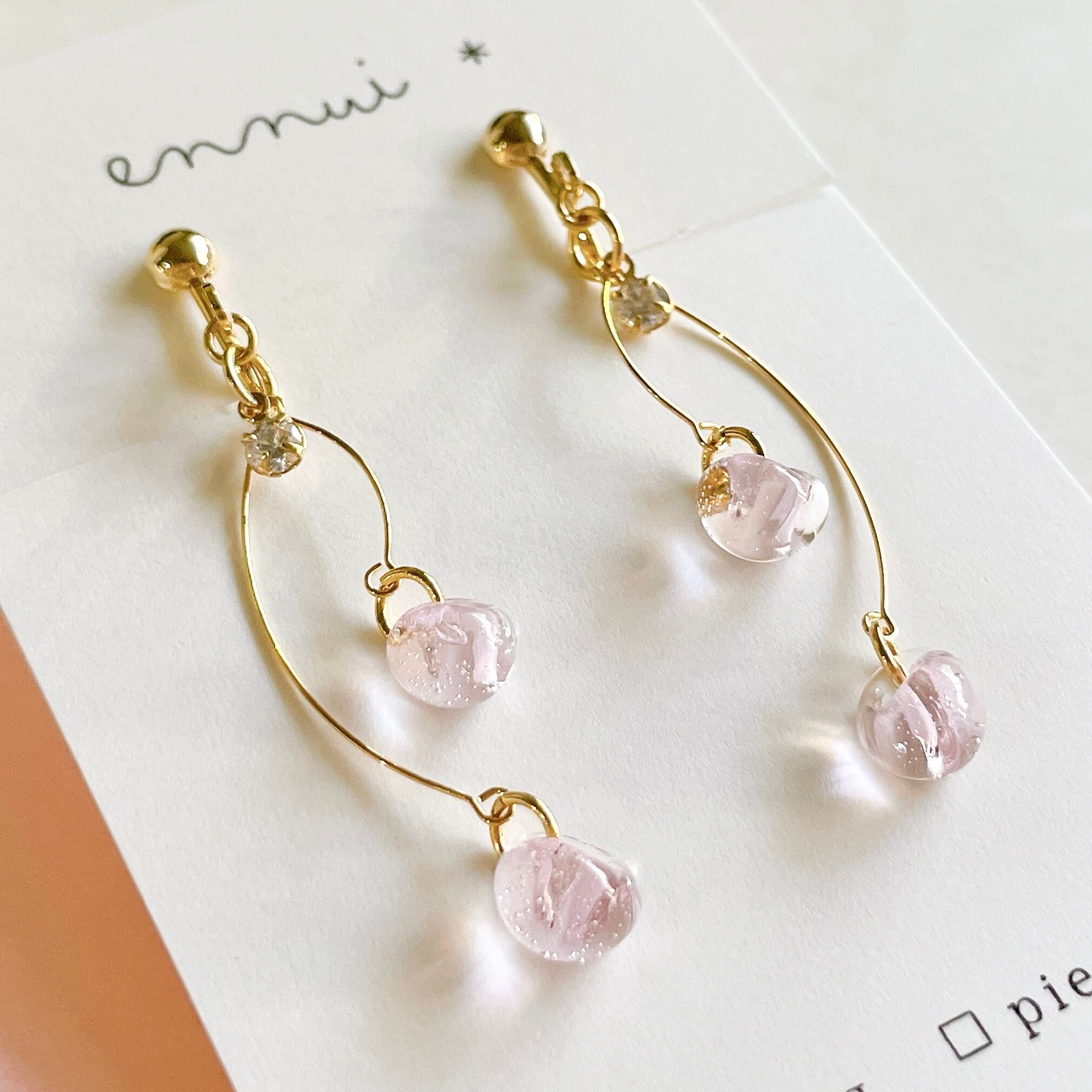 儚く散りゆく桜の美しさを、淡いピンクのティアドロップビーズに閉じ込めたイヤリング/ピアス◎