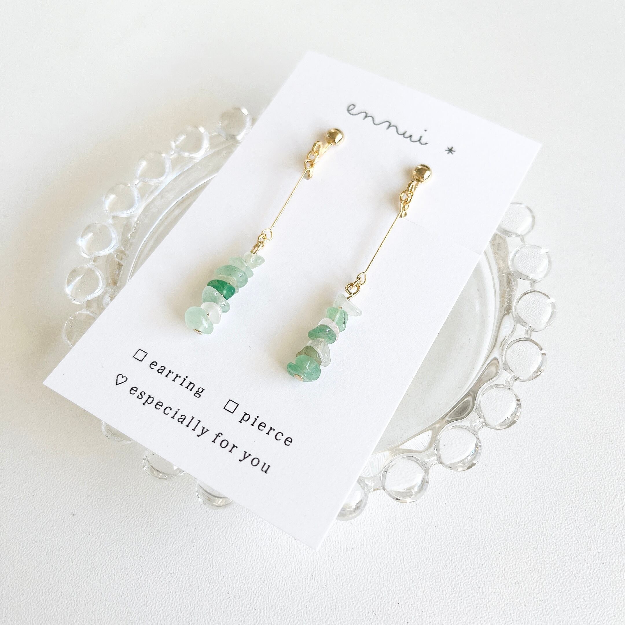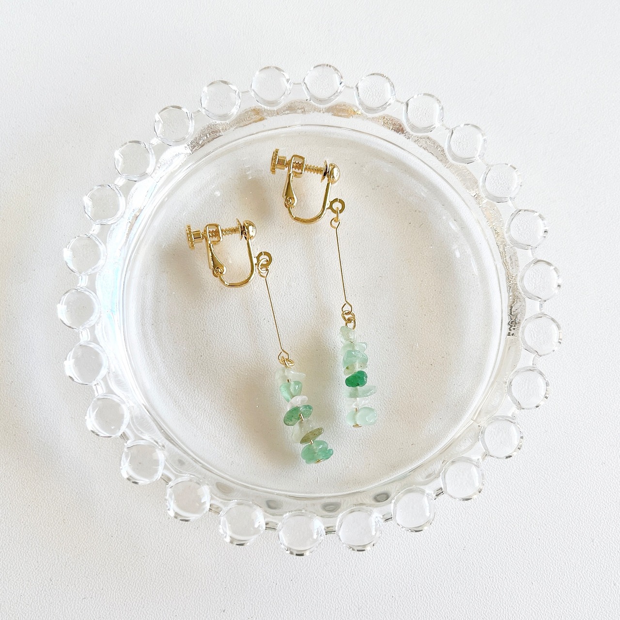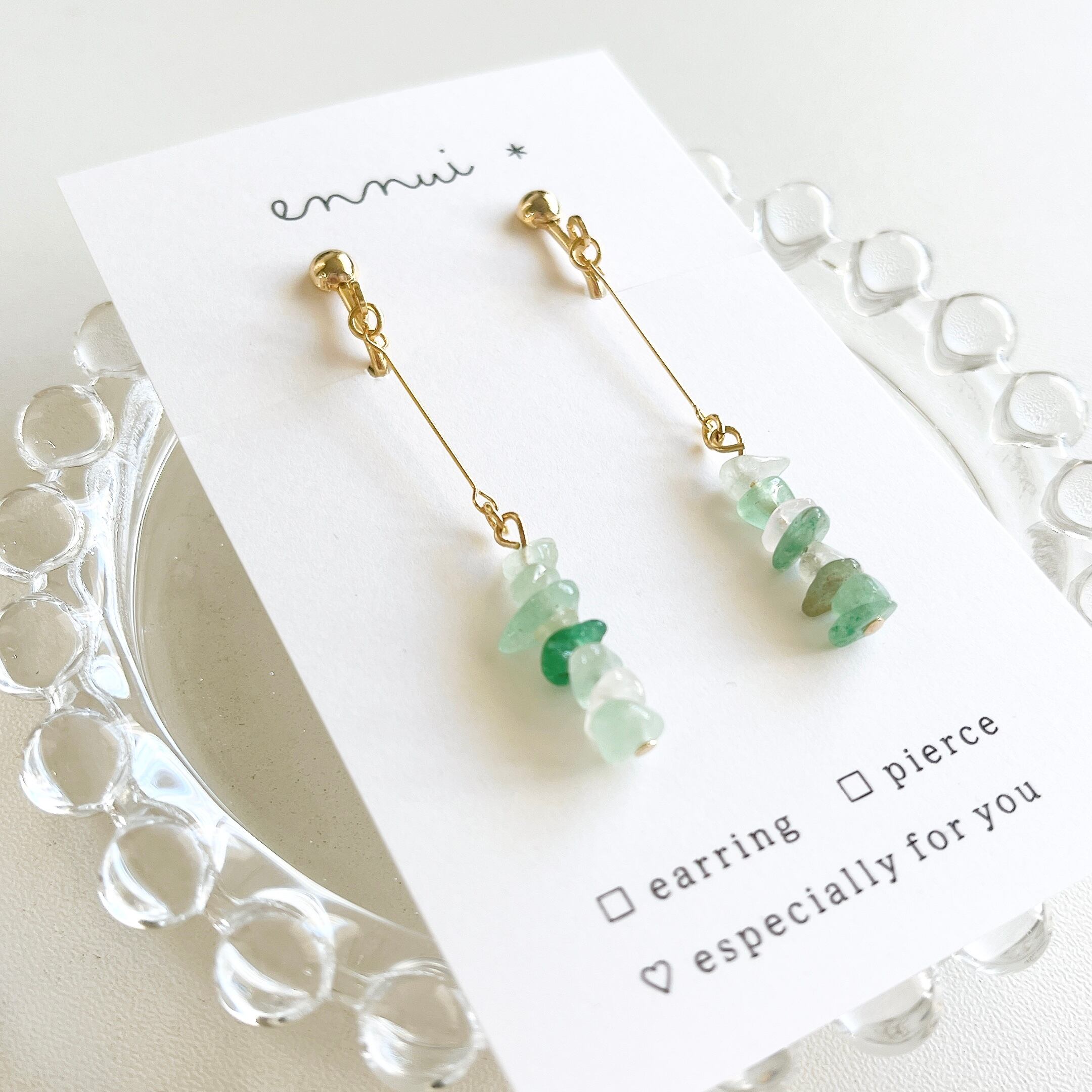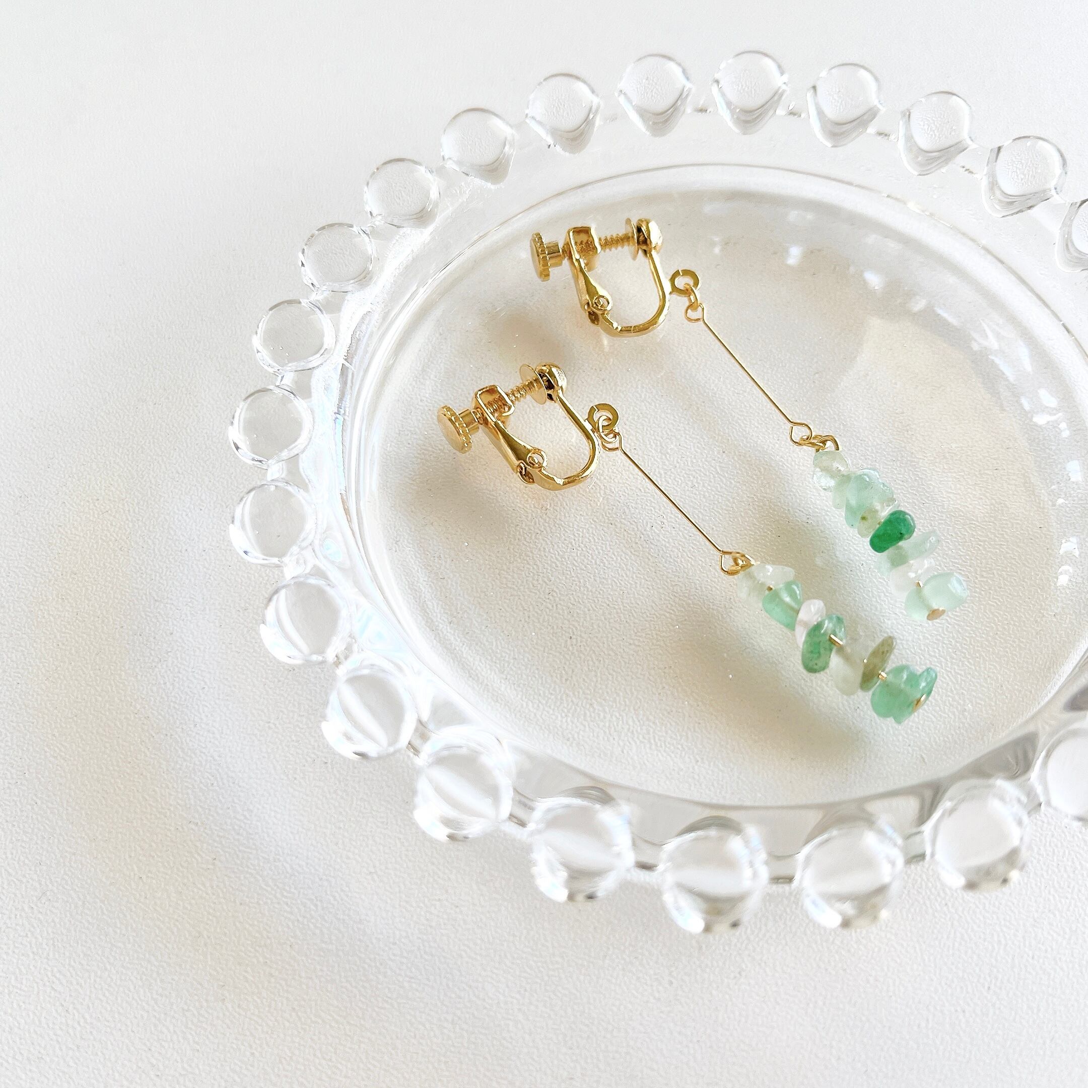 天然石・グリーンアベンチュリンのさざれ石を使ったイヤリング/ピアスです◎